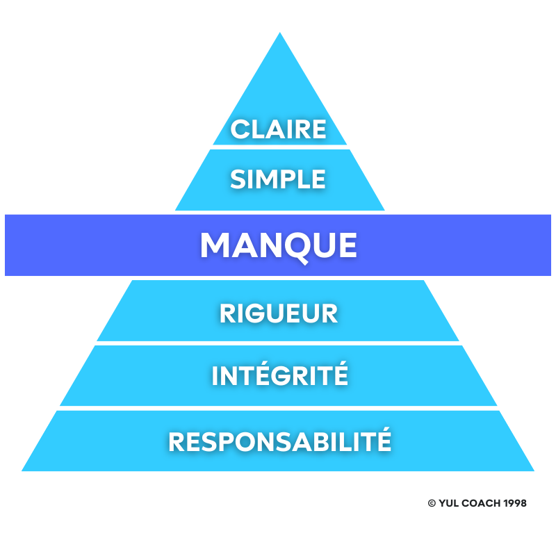 MANQUE : Vous devez rendre les choses ou les situations claires et simples afin de prendre en charge et de vous engager.